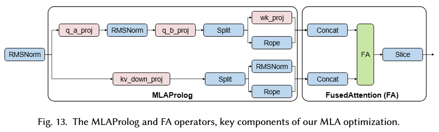 - 将 RMSNorm、Q/K/V projections、RoPE 融合为一个算子 MLAProlog